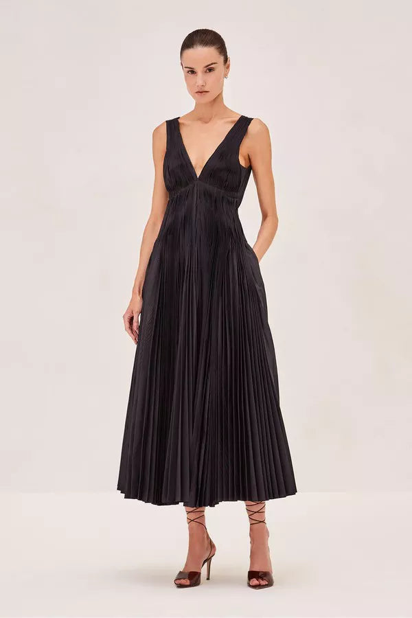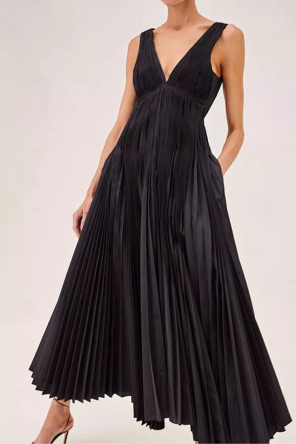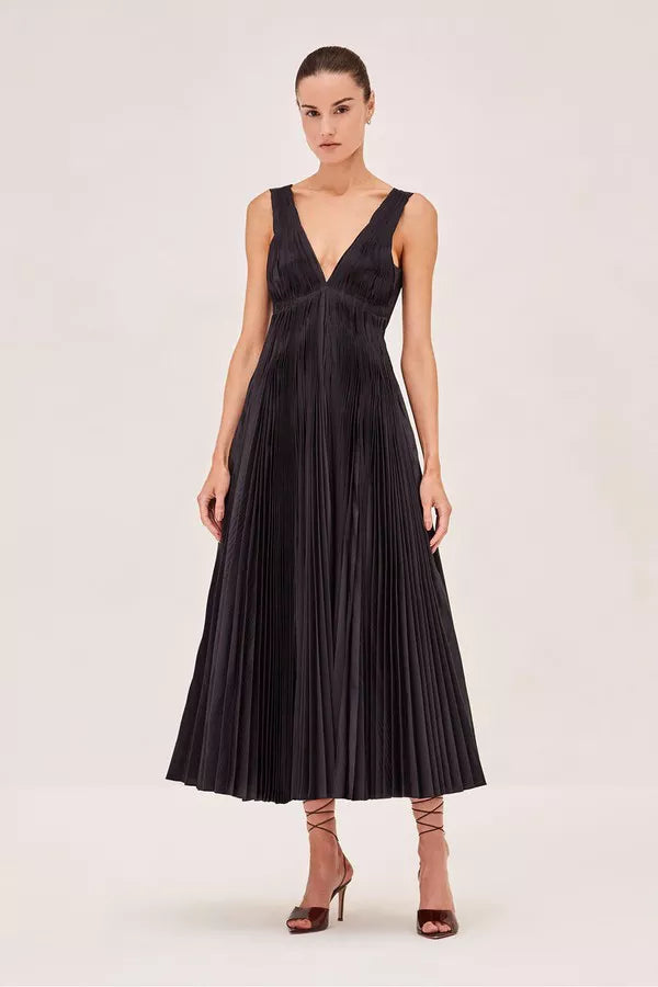 The Lauren Dress features an elegant v-neck and pleats that make it stand out. Its flattering fit to flare design is tailored to fit your figure perfectly. Its pleats and plisse detail create a beautiful silhouette that'll make you look and feel your best.