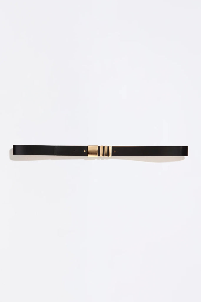 Smooth calfskin belt, gold-coloured metal buckle. H. 2.5 cm
