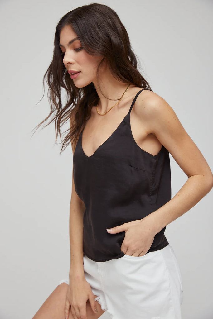 The v-neck cami is super comfortable, classic and versatile! We love how it can literally be paired with anything and how it can also be worn on repeat all year round. We love it paired with jeans and sandals for a casual look or a skirt, blazer, and heels for a more elevated look or for work. No doubt you will love this timeless piece.Made with 100% Tencel. V neck back.
