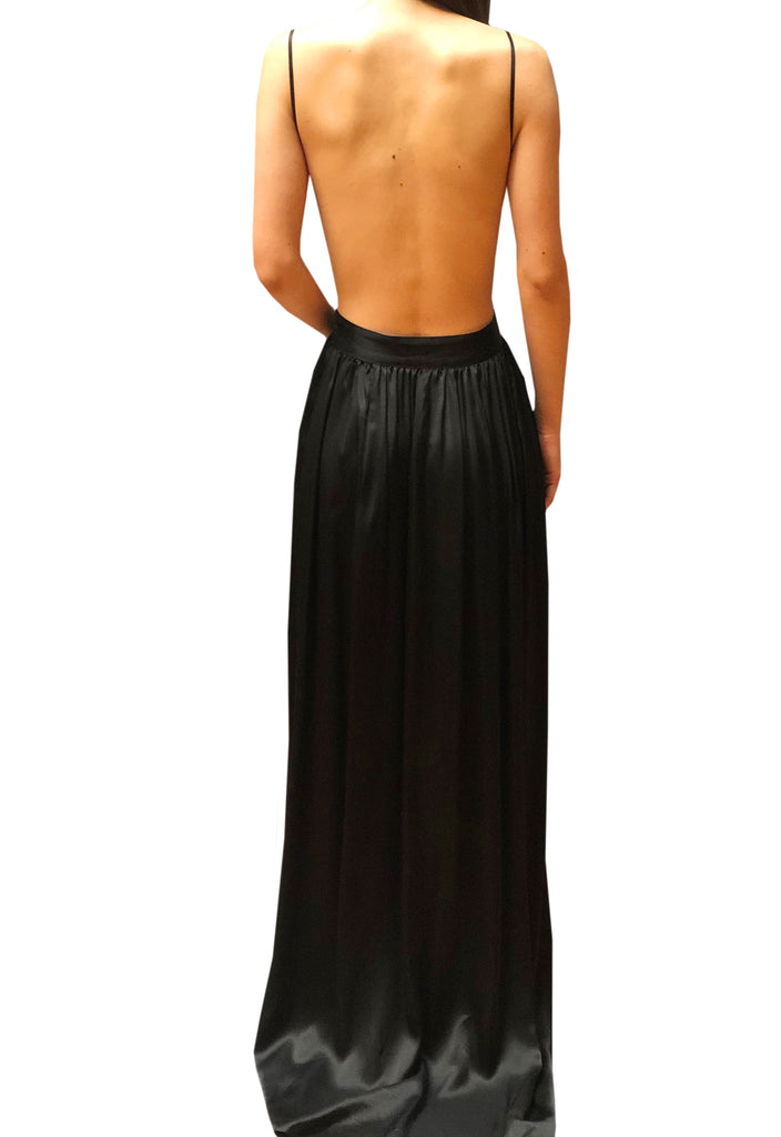 This beautiful silk charmuese dress has a stunning neckline with an open back.