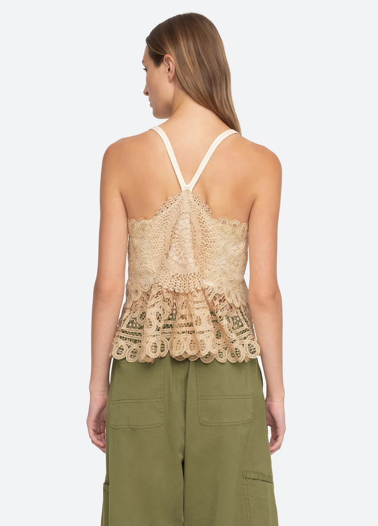The Anastasia romantic battenburg top features intricate lace battenburg detailing and racerback straps.