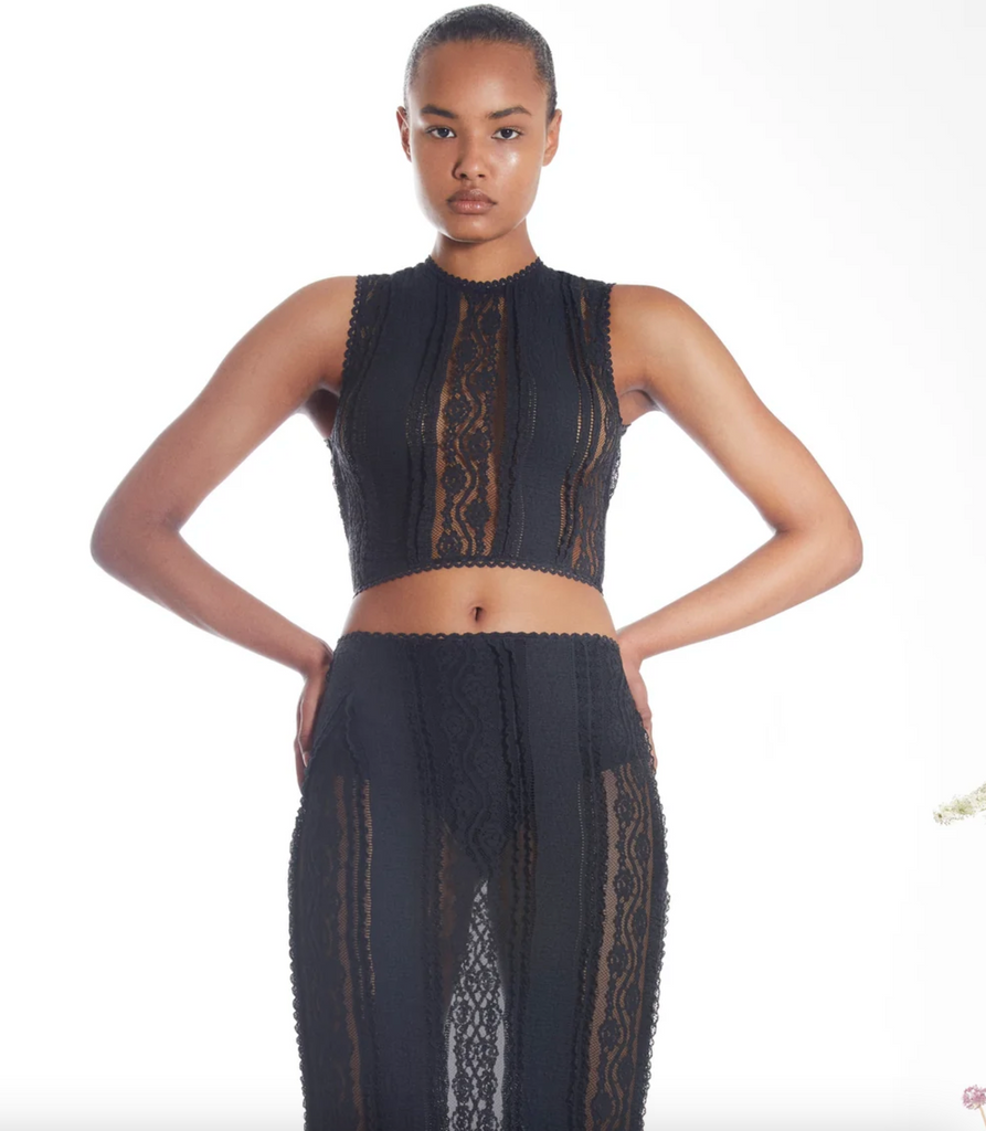 Designed to highlight your figure with its tight and flattering fit, our sleeveless and roundcollar ASTERIA top is the perfect choice for any occasion that requires an extra touch of sophistication and sensuality. Made of mesh fabric containing cotton, this top offers a unique combination of sheerness that creates a delicate visual effect.