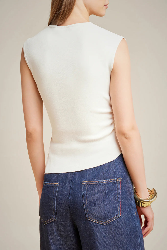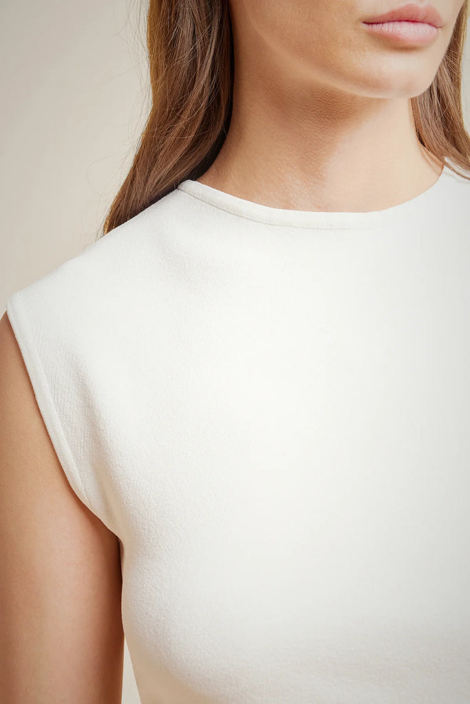 Stretch viscose top, crew neck, armholes, gathered detail on the side.65% VISCOSE 35% POLYAMIDES4LL4SA07-A08