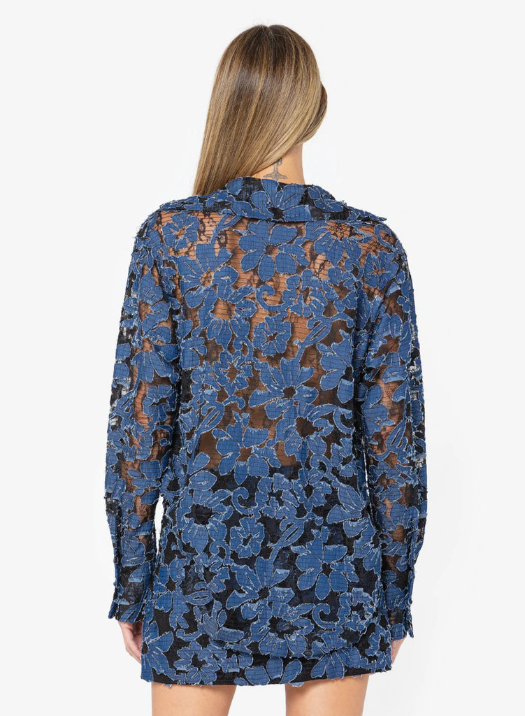 Beckett Sheer Lace Blouse - Blue