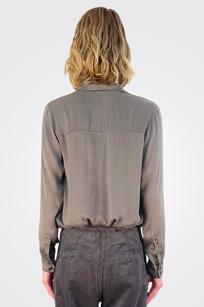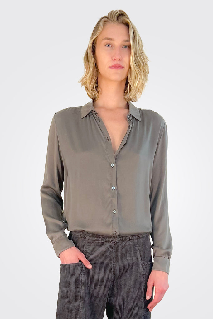 Stretch Satin Silk Shirt - Mud