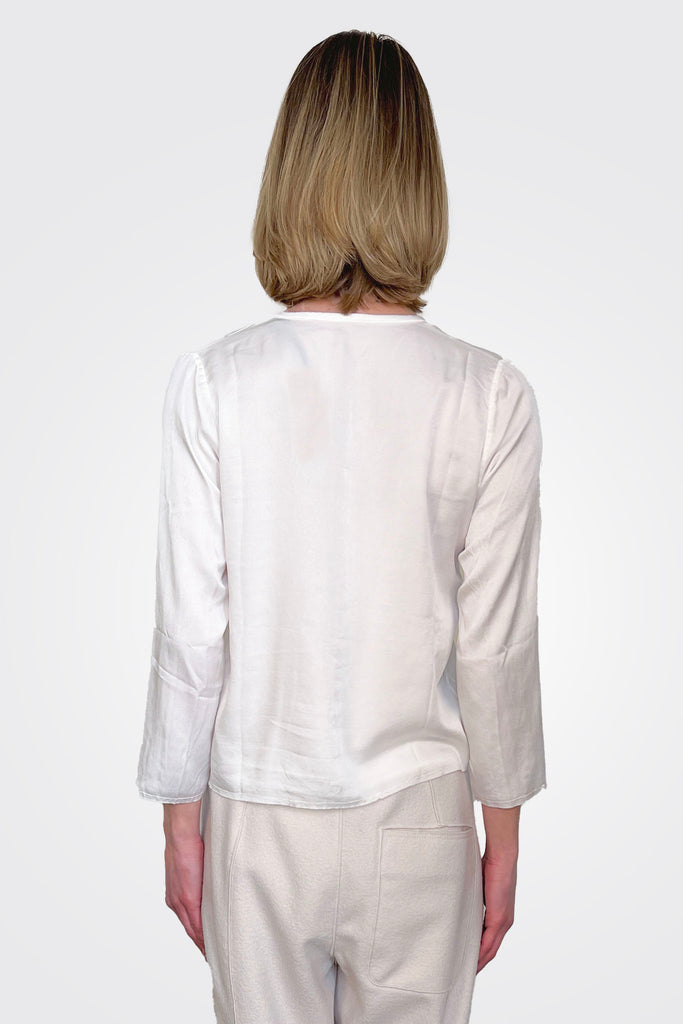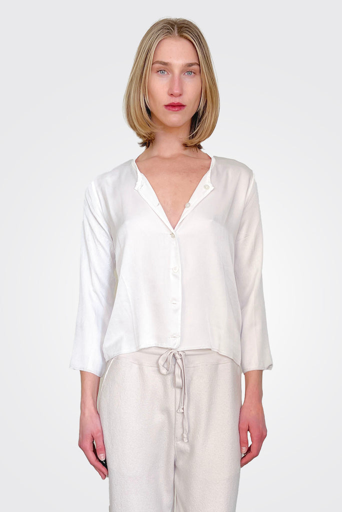 Collarless Crop Silk Shirt - White