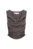 This cute crop top features a unique front gathering that enhances its visual appeal and adds a modern twist to the classic cowl neckline. This gathering detail not only creates a flattering silhouette but also adds a subtle touch of sophistication, making it perfect for both casual and dressy occasions.