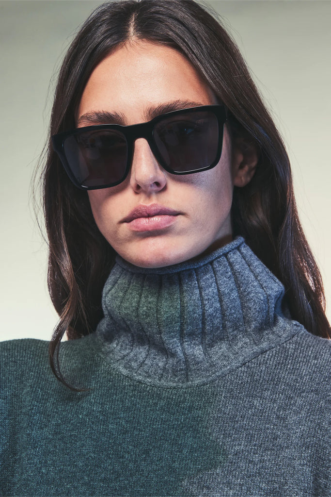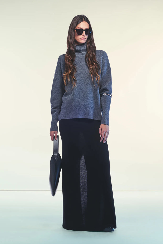 RECYCLED CASHMERE SWEATER WITH HIGH COLLAR IN WIDE RIBBED KNIT, ELASTICATED CUFFS AND HEM. LOOSE FIT.