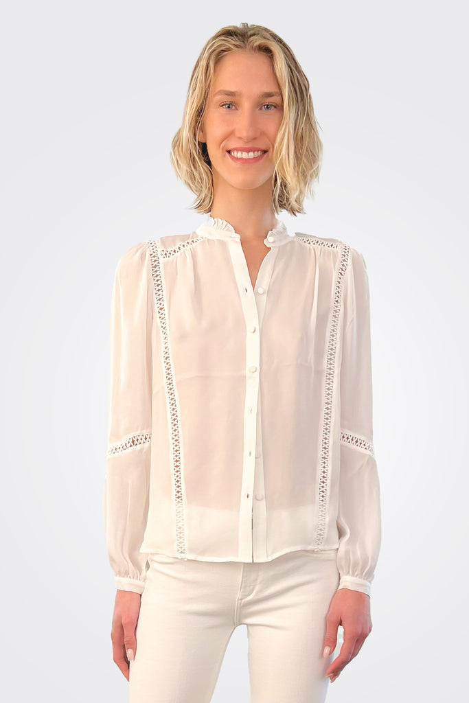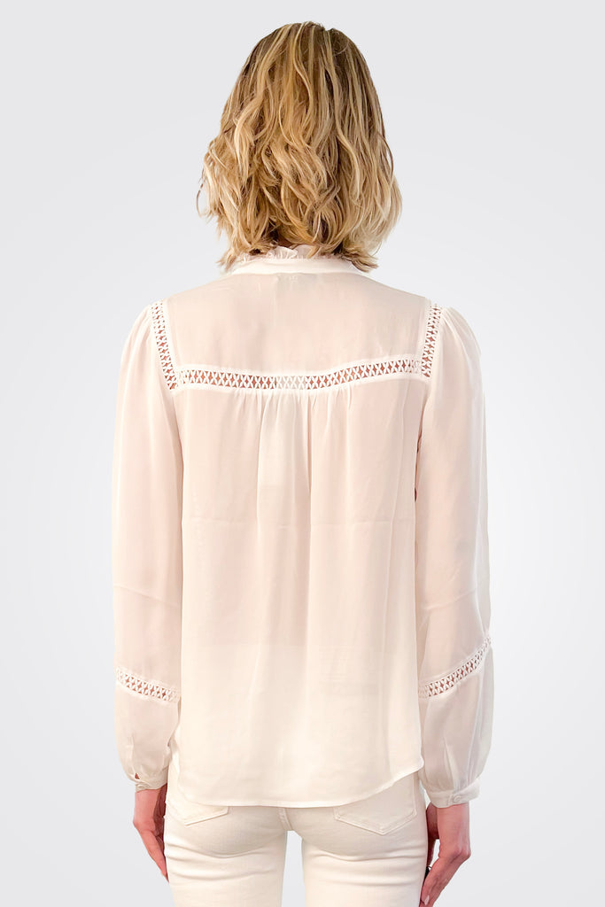 Details are not just details, they make the design. This not-so-basic blouse is transformed into a head-turner by intricate crochet lace insets thoughtfully throughout the blouse. Seasonless and timeless details, perfect top for most occasions.