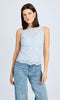 Sequin accents lend a soft yet captivating shimmer to this romantic floral lace top. With a cami lining for a refined finish, it offers a polished look and pairs effortlessly with tailored pants or skirts.