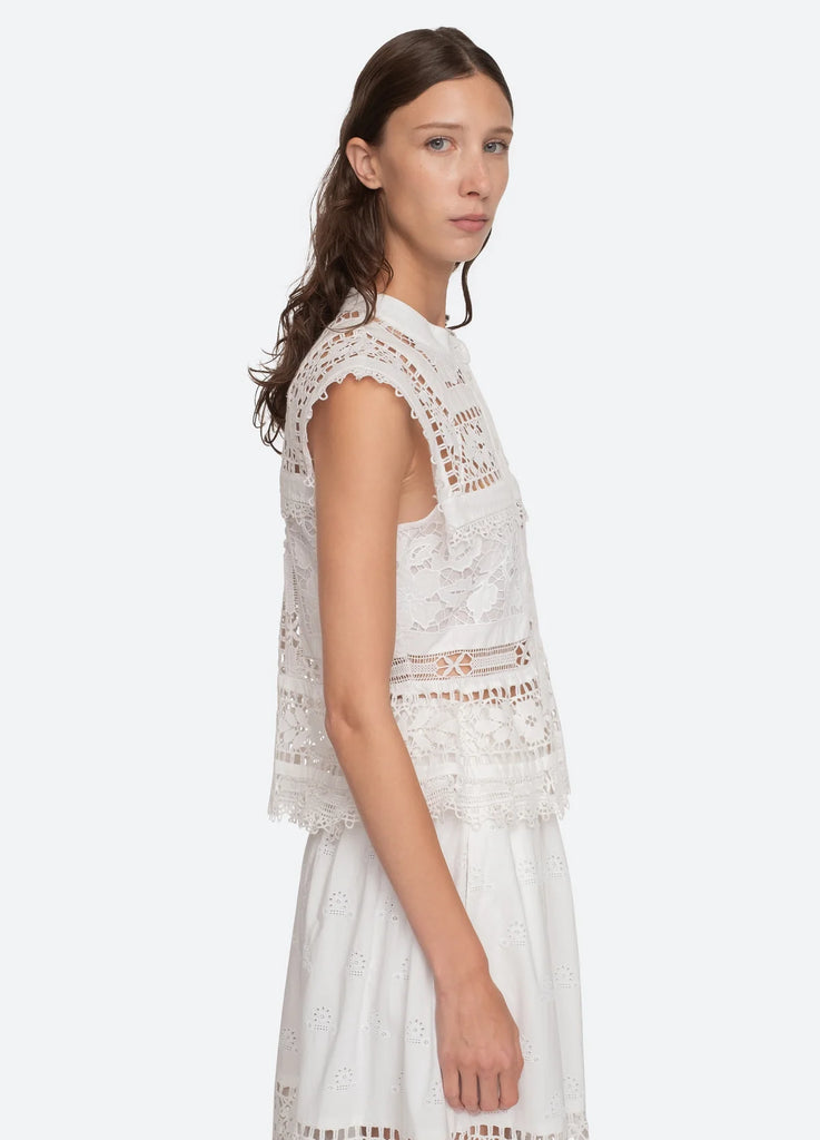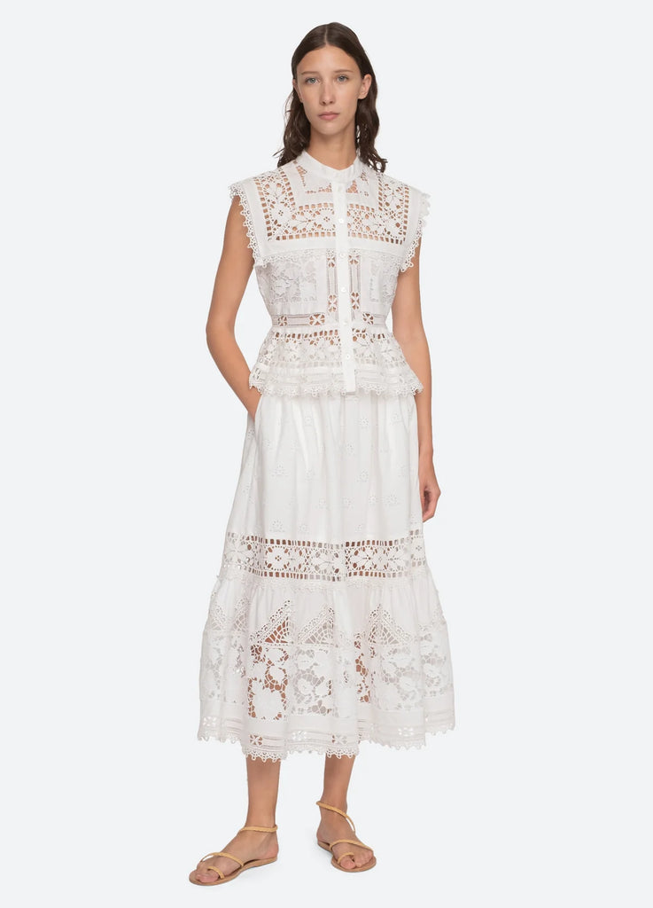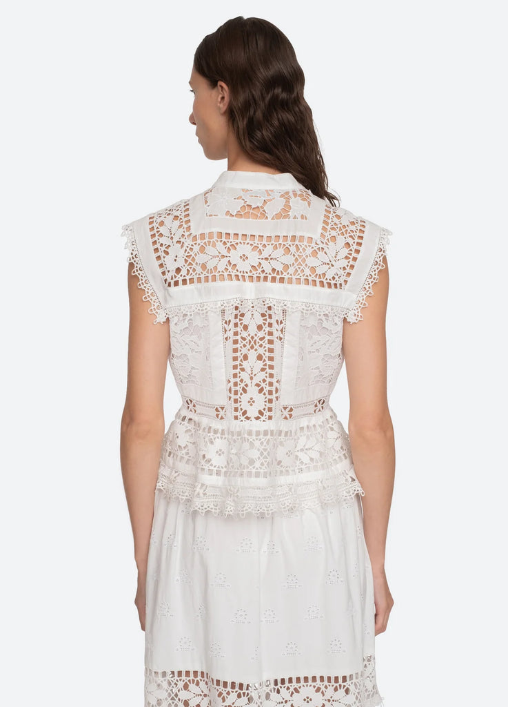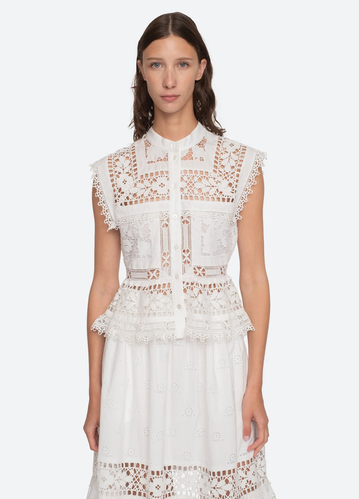 The Joah embroidered lace top features delicate lace detailing throughout and button front closure. Pairs perfectly with the Joah skirt.