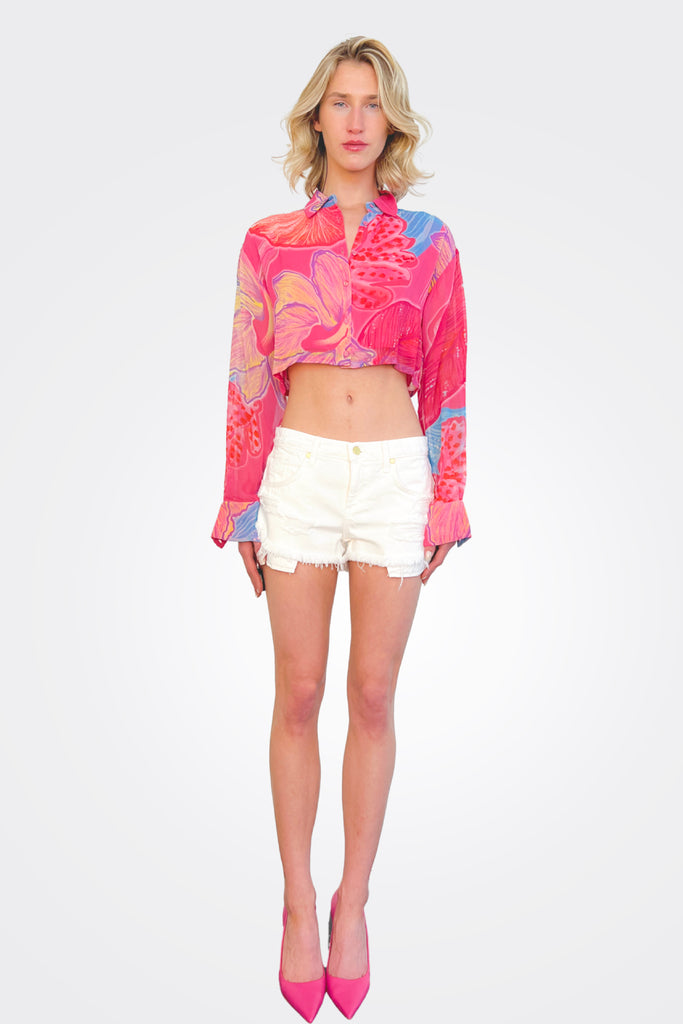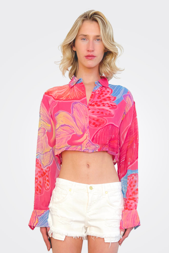 Embrace island chic. This cropped button down shirt brings a dash of vacation vibes to your wardrobe.