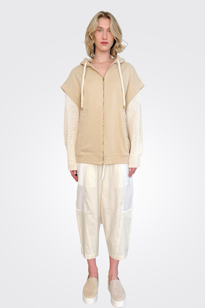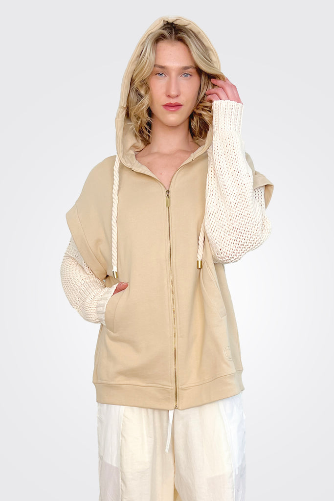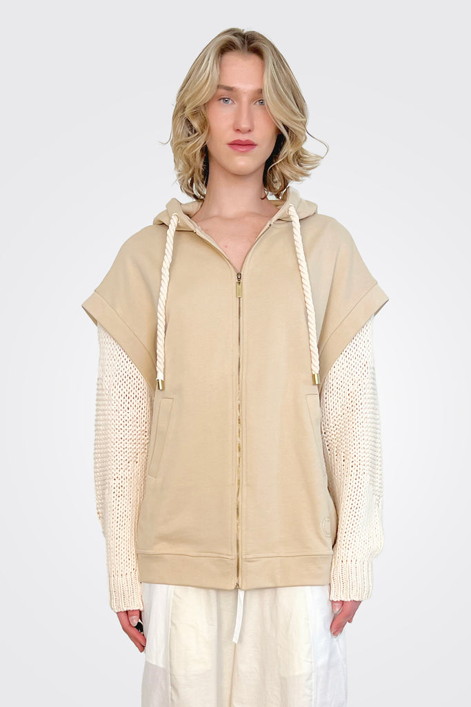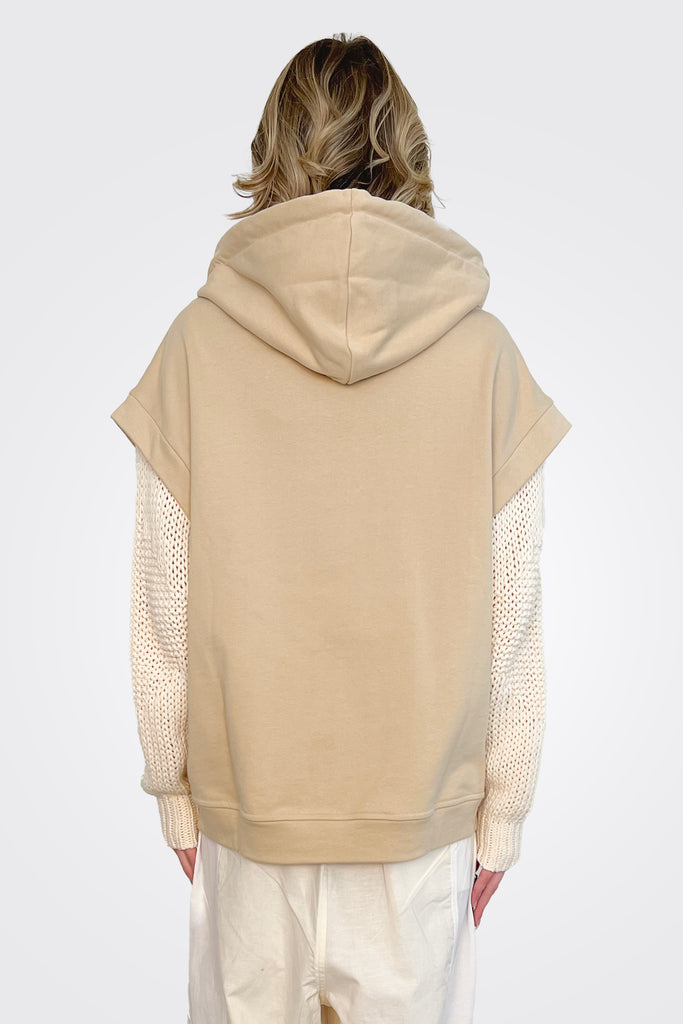 Knitted Sleeve Maxi Sweatshirt - Milk Beige