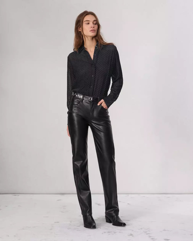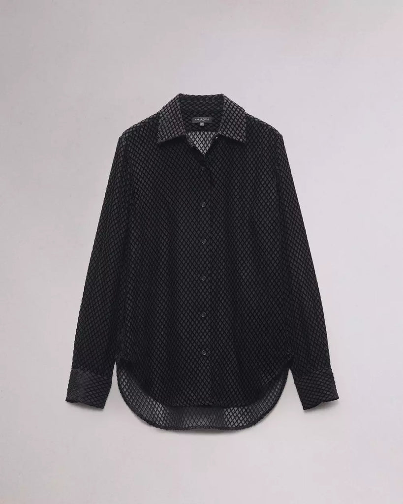 The Lila. This classic fitting shirt is buttoned up the front in our silk-viscose.