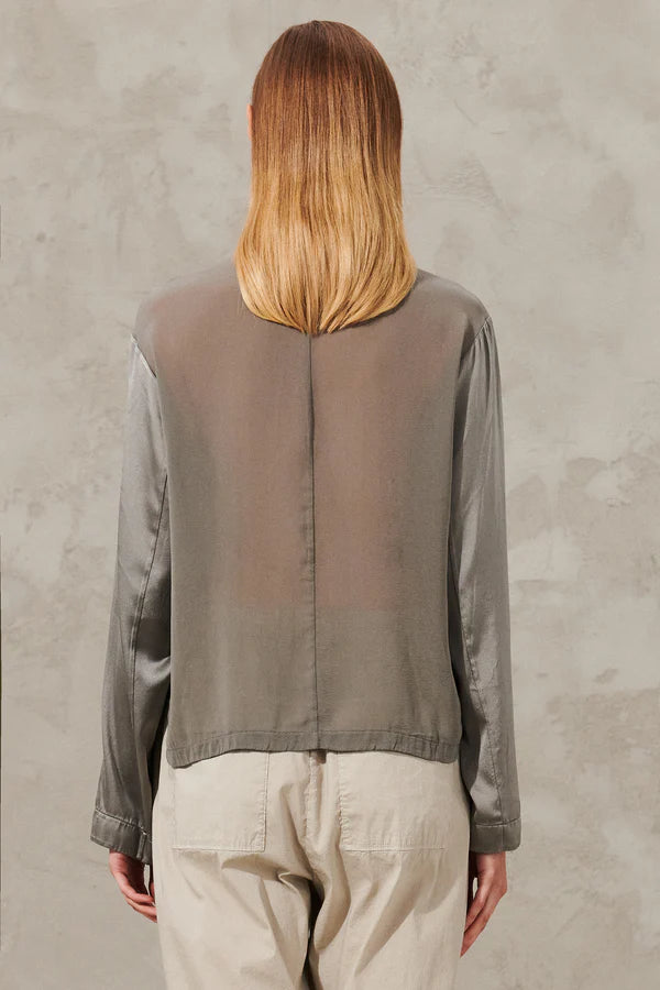 Long Sleeve Stretch Silk Satin Shirt - Grey