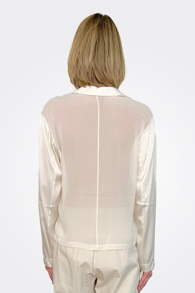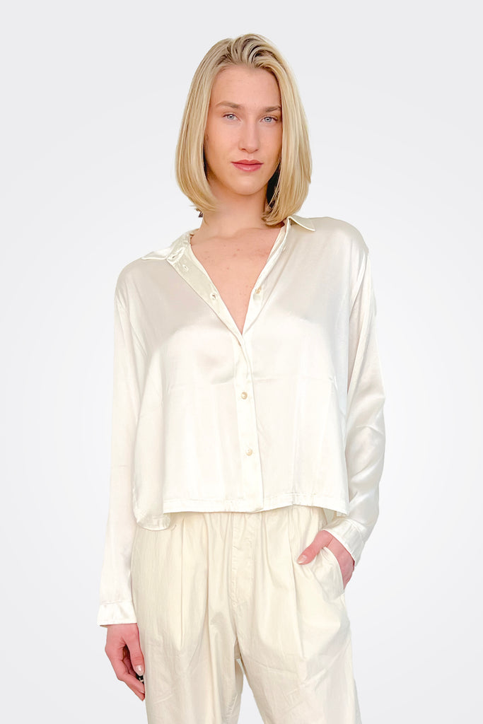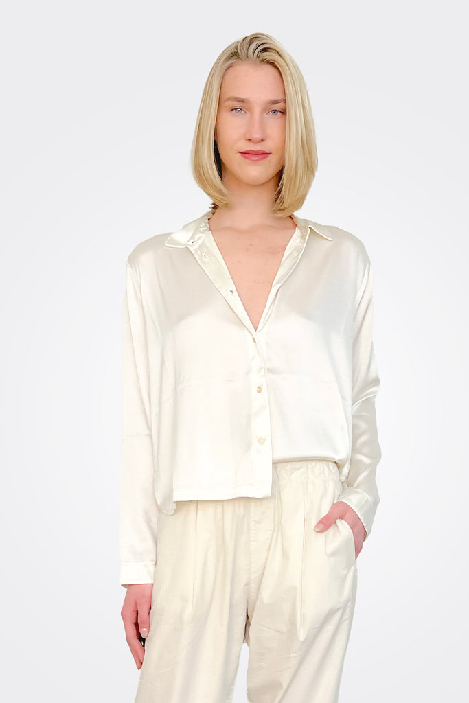 Long Sleeve Stretch Silk Satin Shirt - Ivory