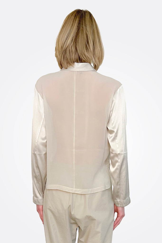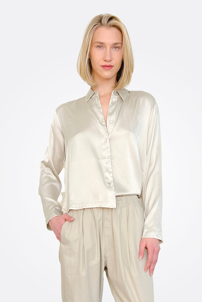 Long Sleeve Stretch Silk Satin Shirt - Pearl Grey