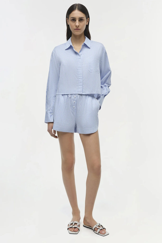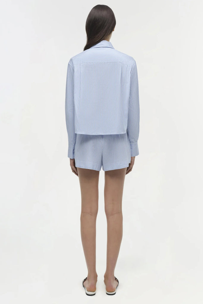 Renata Long Sleeve Cropped Shirt - Blue Hydrangea Stripe