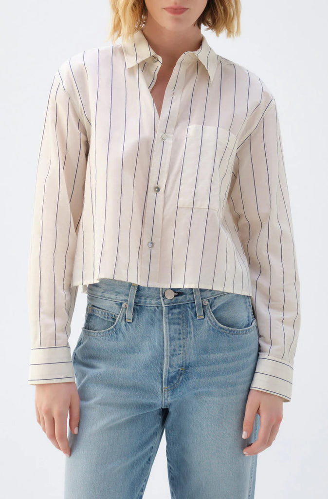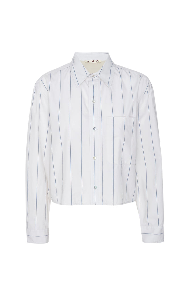 A cropped version of your everyday oversized collared shirt. Features a single chest pocket and shell buttons. Crafted from soft, stonewashed cotton poplin.