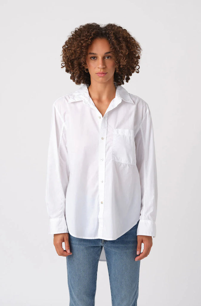 Meet your new everyday oversized collared shirt. Features a single chest pocket, shirt-tail hem and shell buttons. Crafted from soft, stonewashed cotton poplin.
