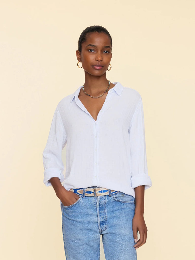 Bare Necessities. Scout is made in our washed double faced cotton gauze for a soft, gently crinkled feel. This lightweight button-front shirt has a shirttail hem and box pleated back yoke.