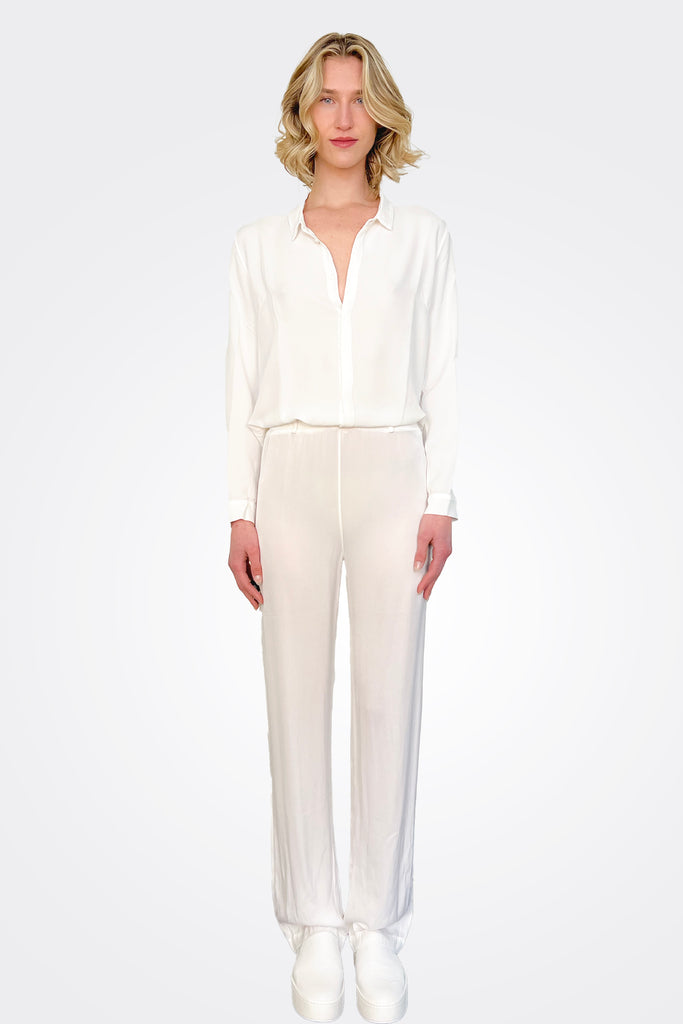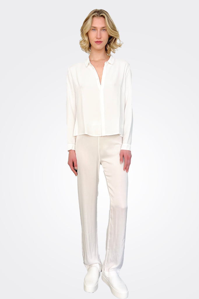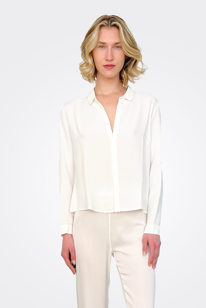 Short Button Up Silk Shirt - White