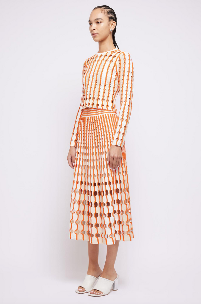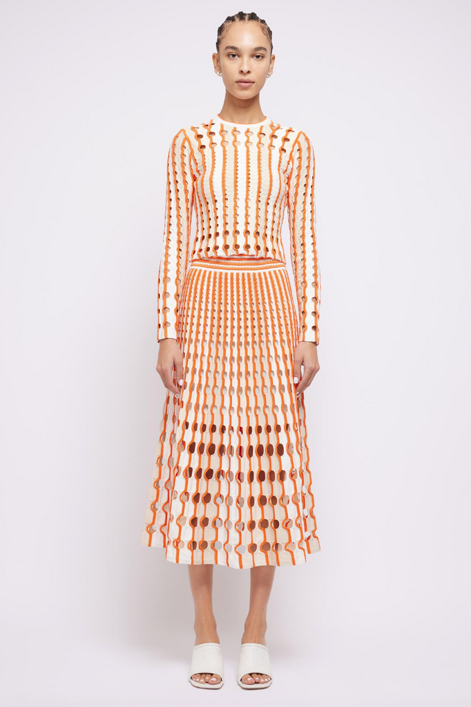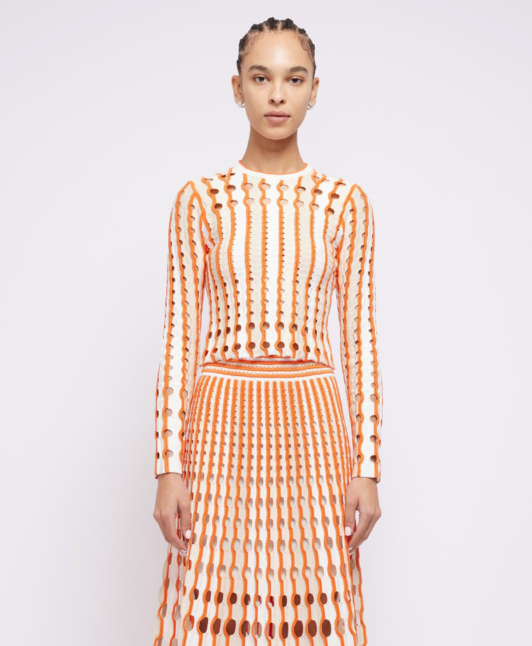 This unique, open-knit top features a partial lining and a slightly cropped silhouette.