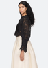 The Vania lace combo sweater blends modern elegance with vintage-charm, featuring a cable knit body framed by sheer lace sleeves. The cropped silhouette lends a contemporary finish to this polished style.