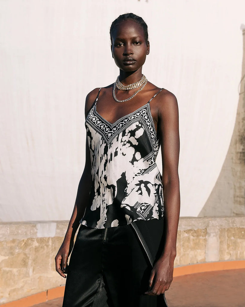 Wonpy Cami Blouse - Black Print