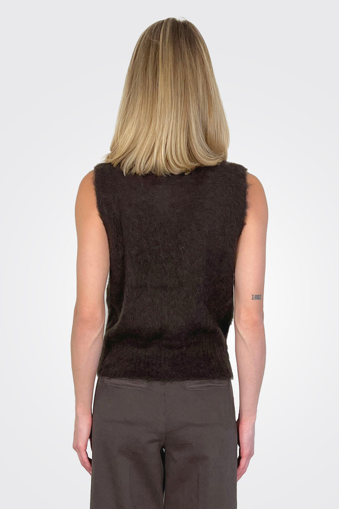 Lightweight soft fuzzy alpaca sleeveless turtleneck pullover top
