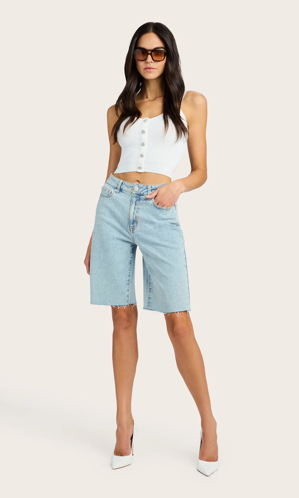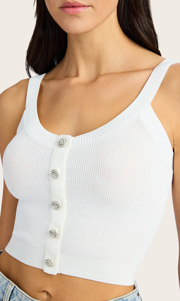 Switch up your sweater collection with the Xenia. Made of a light knit and adorned with sleek gold buttons, this cropped tank is perfect for layering with a soft cardigan and your favorite jeans for a day shopping or hanging with friends.