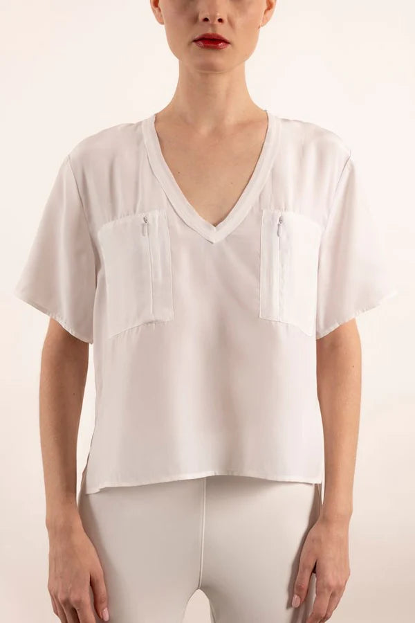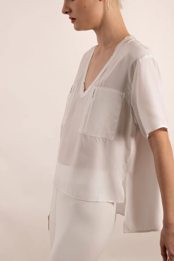 Yvett Silk Pocket Tee - White