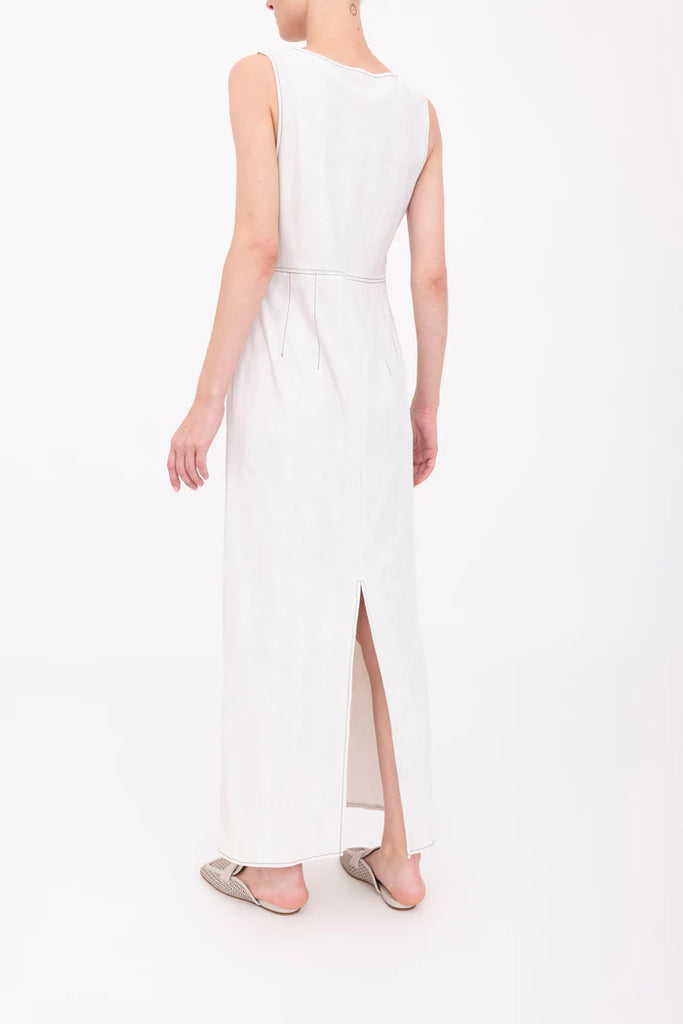 Effortlessly blending elegance and performance, this dress is constructed from panels of our silky smooth Soft Tech fabric with contrast stitching for added interest. Featuring a flattering scuba tank and long silhouette, it’s simplistic design pairs perfectly with our Bryant coat done in the same Soft Tech fabric.