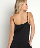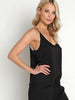 A lustrous and lightweight satin camisole with a drapey V-neck design and adjustable spaghetti straps. Pair it with the matching wide leg PJ pant in black (pictured, sold separately) for the full loungewear look.