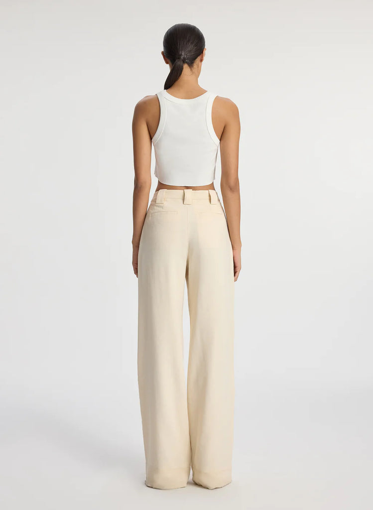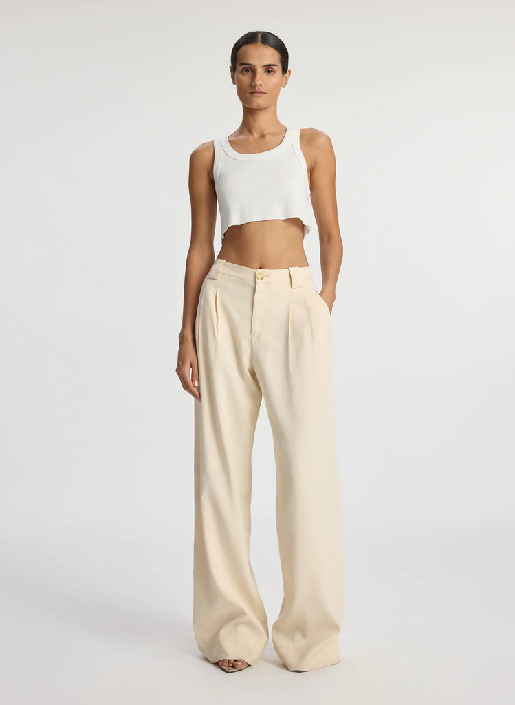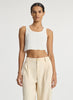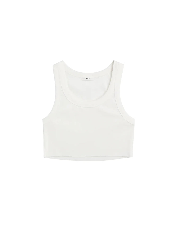 The Halsey Tank is crafted from a soft ribbed cotton fabric in wardrobe-essential. This cropped silhouette features a scoop neckline, thick straps, and a raw hemline.