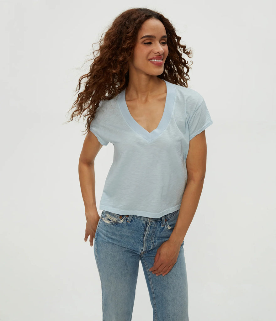 Your day-to-day tee, got a refresh in our beloved SUPIMA® cotton. Offering a more generous fit, this basic has a big personality with a v-neckline complete with a wide-ribbed trim, short sleeves, and a cropped fit that stops just at the top of the waistband. This, wear-with-everything tee, exceeds expectations as a comfortable, but stylish option for every body.