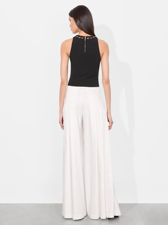 Your go-to tank just got a major upgrade. This sculpting knit top is crafted from a thick, supportive bandage material that hugs you in all the right places. The high neckline is finished with gold grommet hardware for a touch of edge, while the racerback silhouette keeps it sleek. It’s form-fitting, flattering, and an easy swap for your go-to basic tank when you want a little more wow factor.