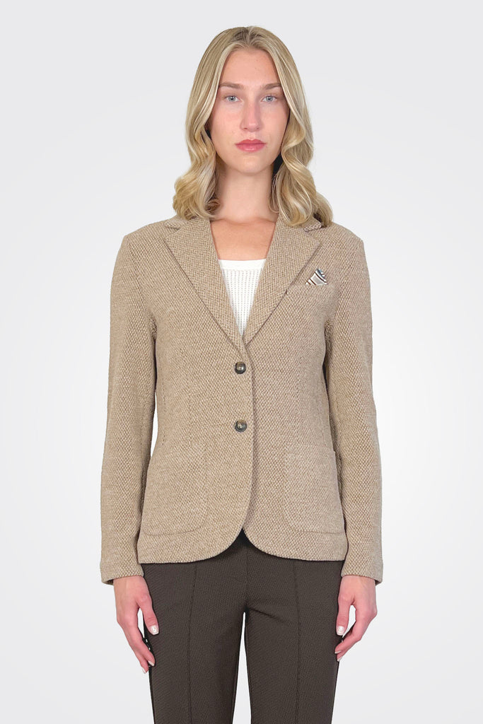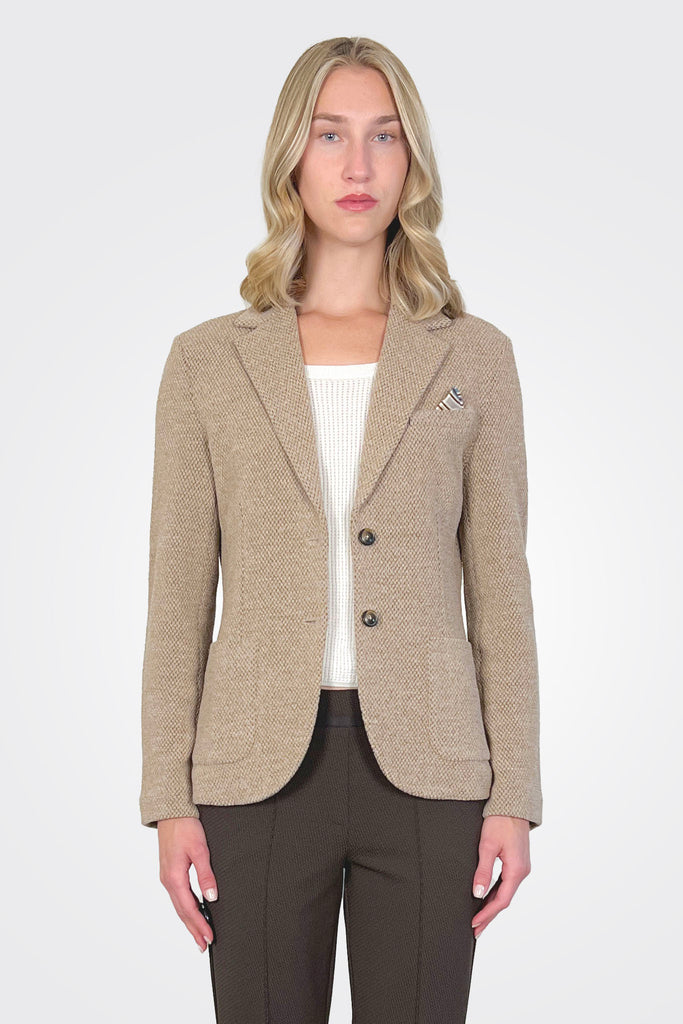 - The unlined model features a sophisticated 3D knitted structure made from an elastic virgin wool virgin wool blend, which ensures a high level of comfort.