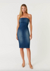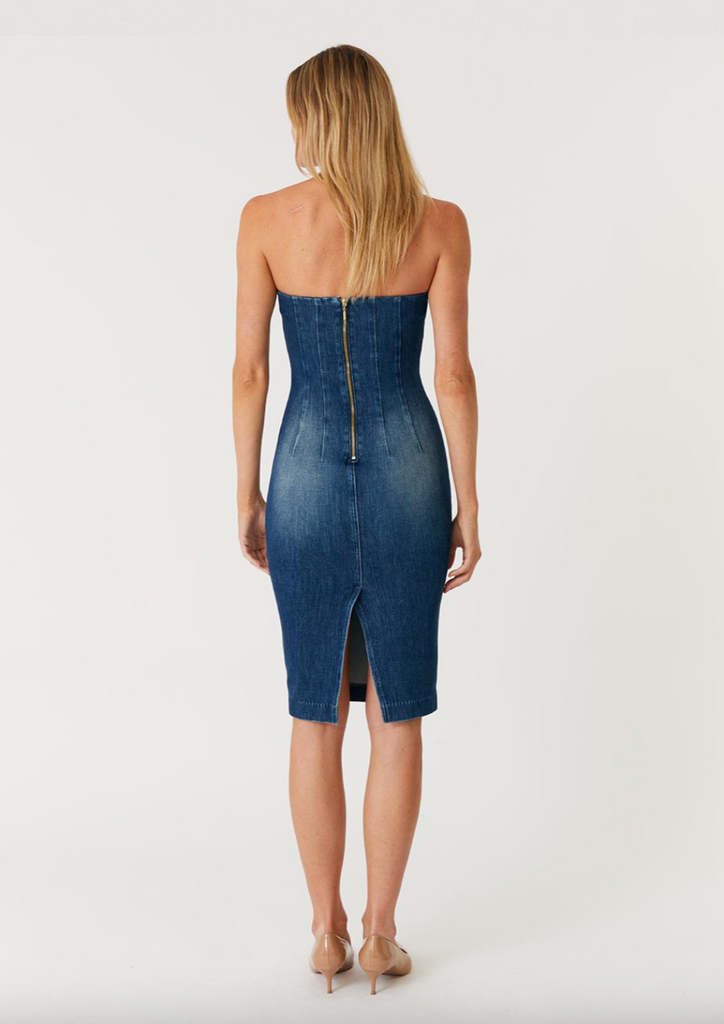 The Karla Dress is a must-have in every wardrobe. Designed with a slim fit and crafted in bi-stretch denim, it offers shape retention and hold. With its strapless design, this dress is perfect for any occasion and will flatter any body type.