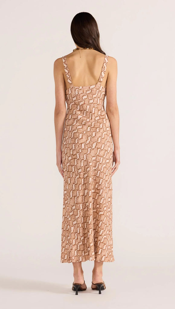 Slinky, statement-making and effortlessly elevated—the KOA Bias Midi Dress is your go-to for turning heads. Crafted from soft, fluid fabric cut on the bias, this dress hugs in all the right places and falls beautifully over the body. Featuring thick straps, a flattering V-neckline, and a subtle side zip for a seamless fit, it’s finished in the signature KOA snake print for a bold-yet-timeless vibe.