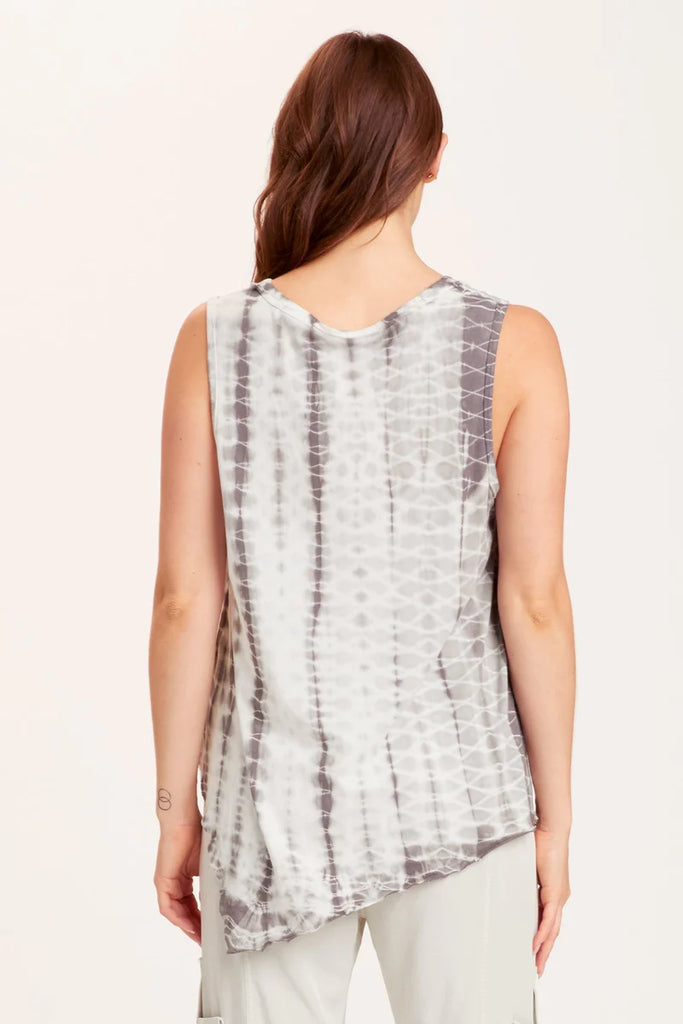 Asymmetric high-low hems are all the rage in the Lazzaro Tank. V-neck and raw-edge details round out this fun top.