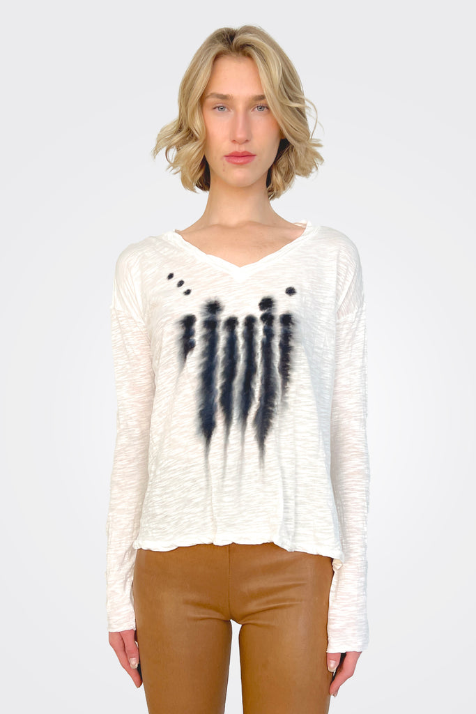 V Neck Long Sleeve Top - Mineral Black