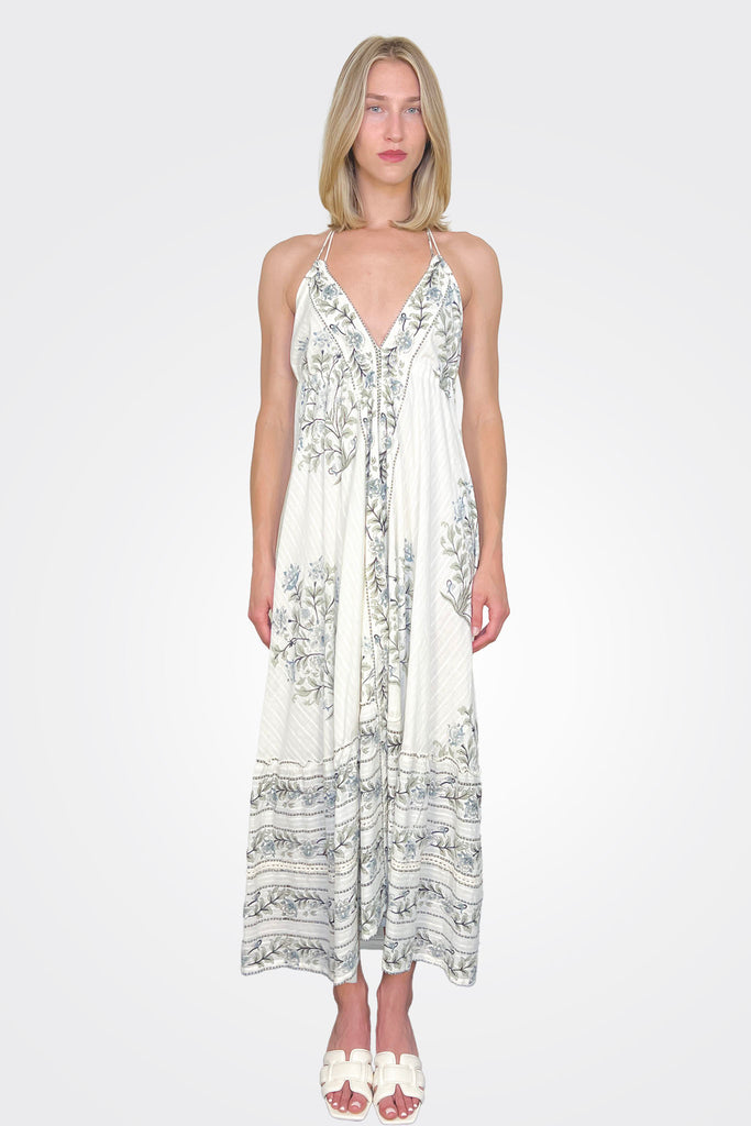 This NIBI MTK Ziggy Halter Dress in Vert Victorian is the perfect choice for a stylish and comfortable look. The halter neck design adds a touch of elegance, while the navy block stripe print offers a classic and timeless look. Made with high-quality materials, this dress truly combines fashion with functionality.
