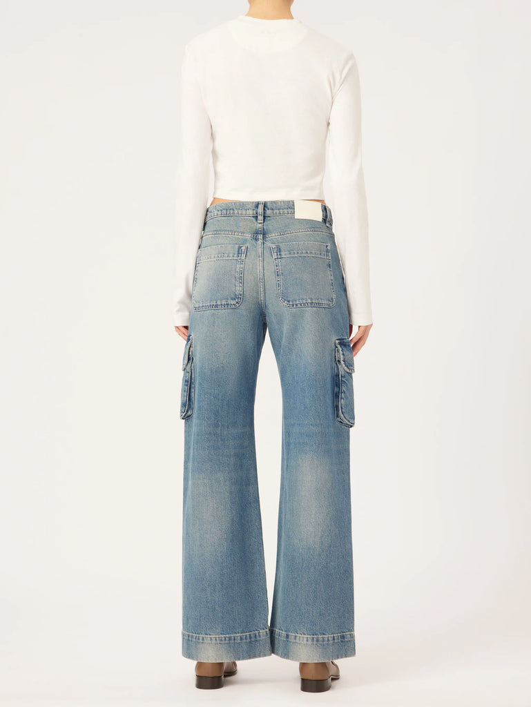Zoie is a relaxed wide leg with a contoured waistband that sits high in the back and dips low in front for a Y2K inspired look.
