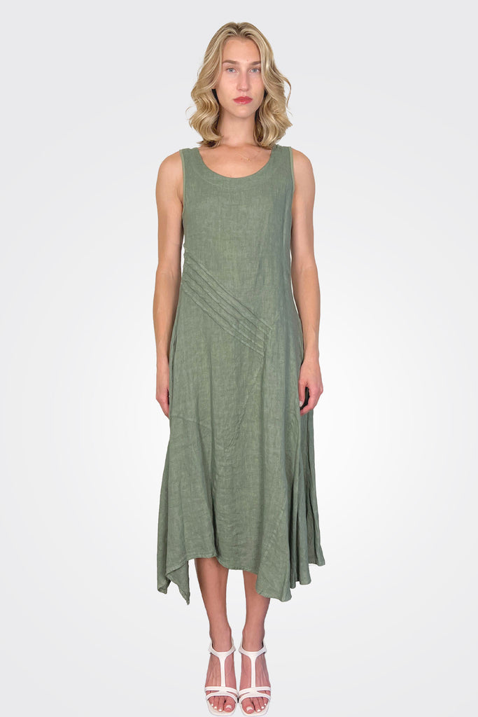 Inizio’s Linen Dress flaunts a great style from Italian linen dressmaker, Inizio. Asym detail across bodice