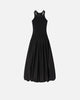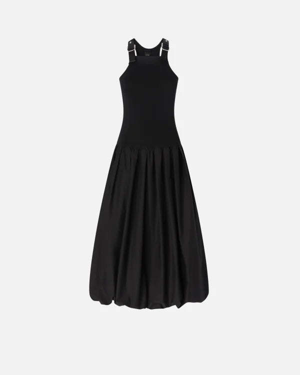 Women's sleeveless midi dress with slim-fitting bodice in ribbed stretch cotton, racer neck at the back and technical, metal buckle-adjustable shoulder straps. The midi-length balloon skirt is made from fine pelleovo cotton muslin—a fabric with a compact texture and an ultra-light, soft feel—and includes practical inset side pockets. Wear this balloon dress as part of a refined, original outfit, personalising with the right accessories for the occasion.