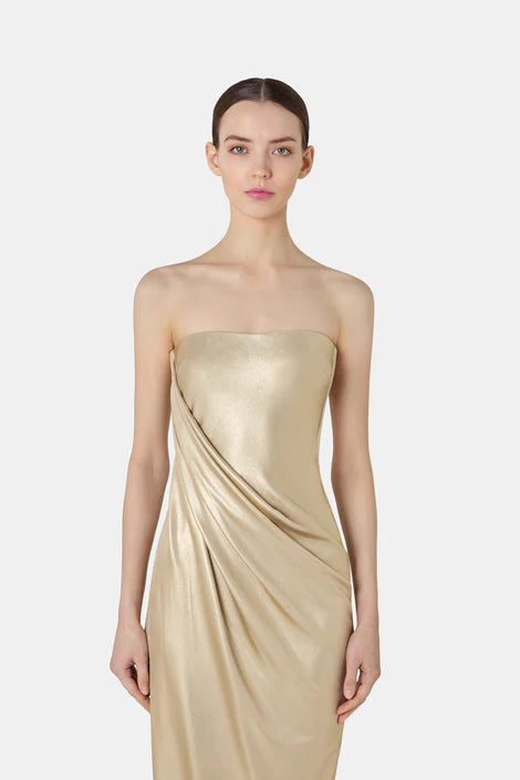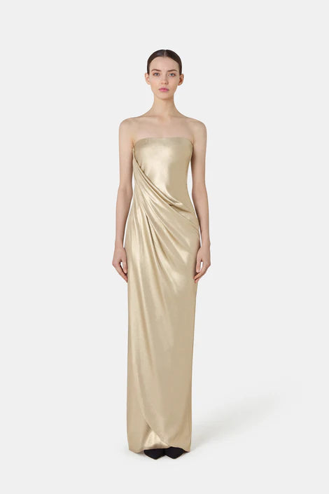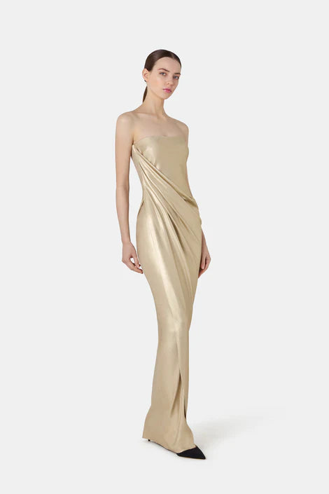Jiro gown offers a refined and romatic style.The side draping makes the silhouette harmonious and statuesque