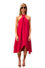 Azeeza dress. Cross neck and tie back for a statement look. High low hem.