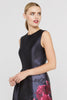 Placed print mikado dress featuring a vibrant shadow floral bouquet. Designed with princess seams and soft pleating at the waist for a structured yet feminine silhouette. Finished with pockets—perfect for holiday dinners, weddings, or a night at the theatre.
