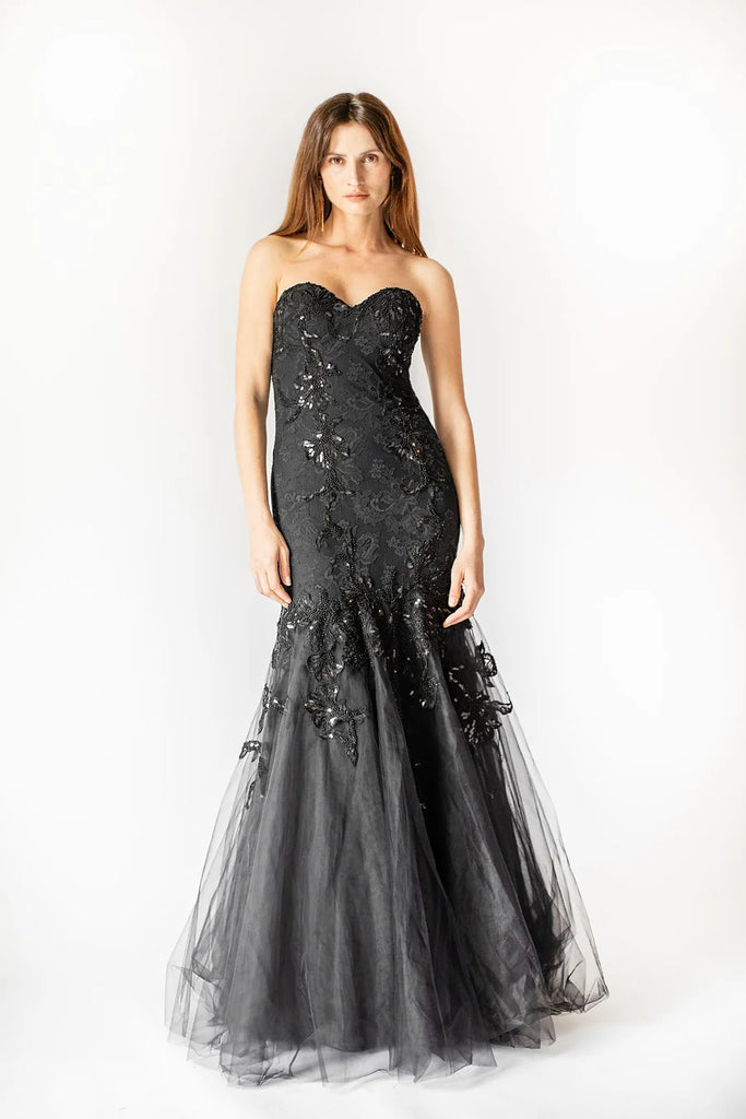 Strapless Tulle Mermaid Gown - Black